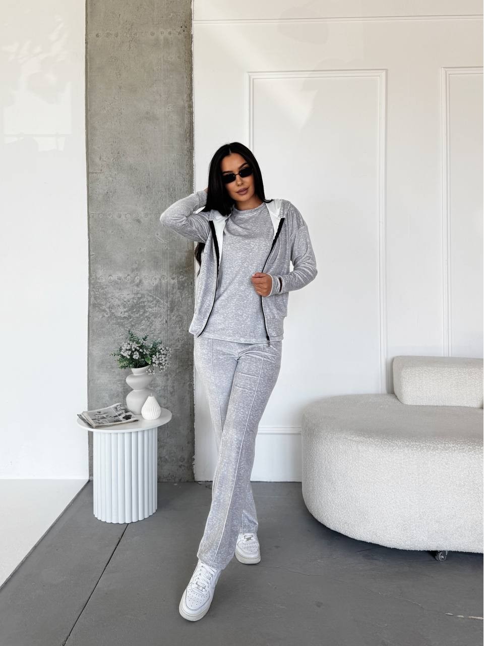 Жіночий велюровий костюм 3-ка сiрого кольору 33845