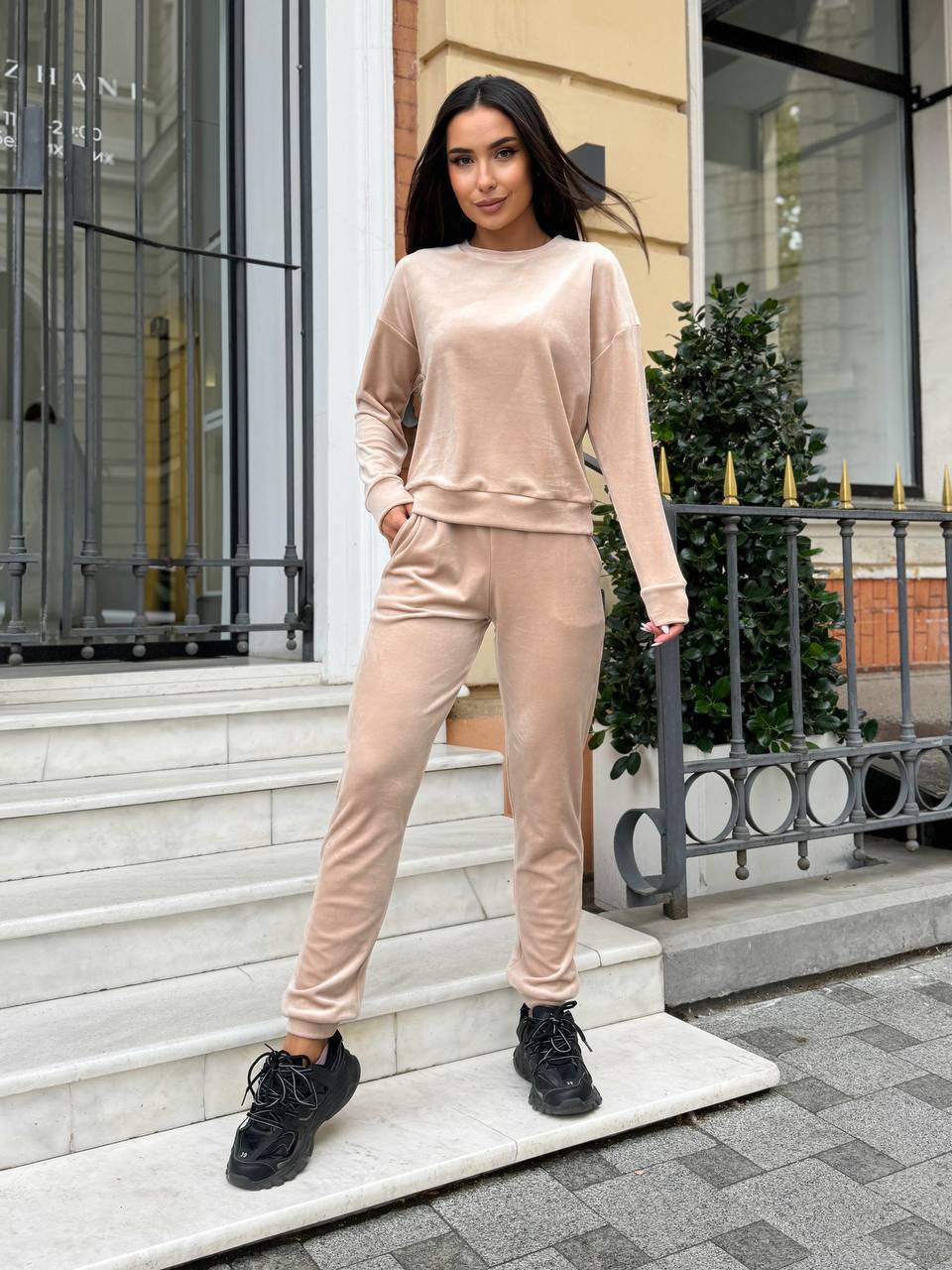 Жіночий велюровий костюм двійка бежевого кольору 34133