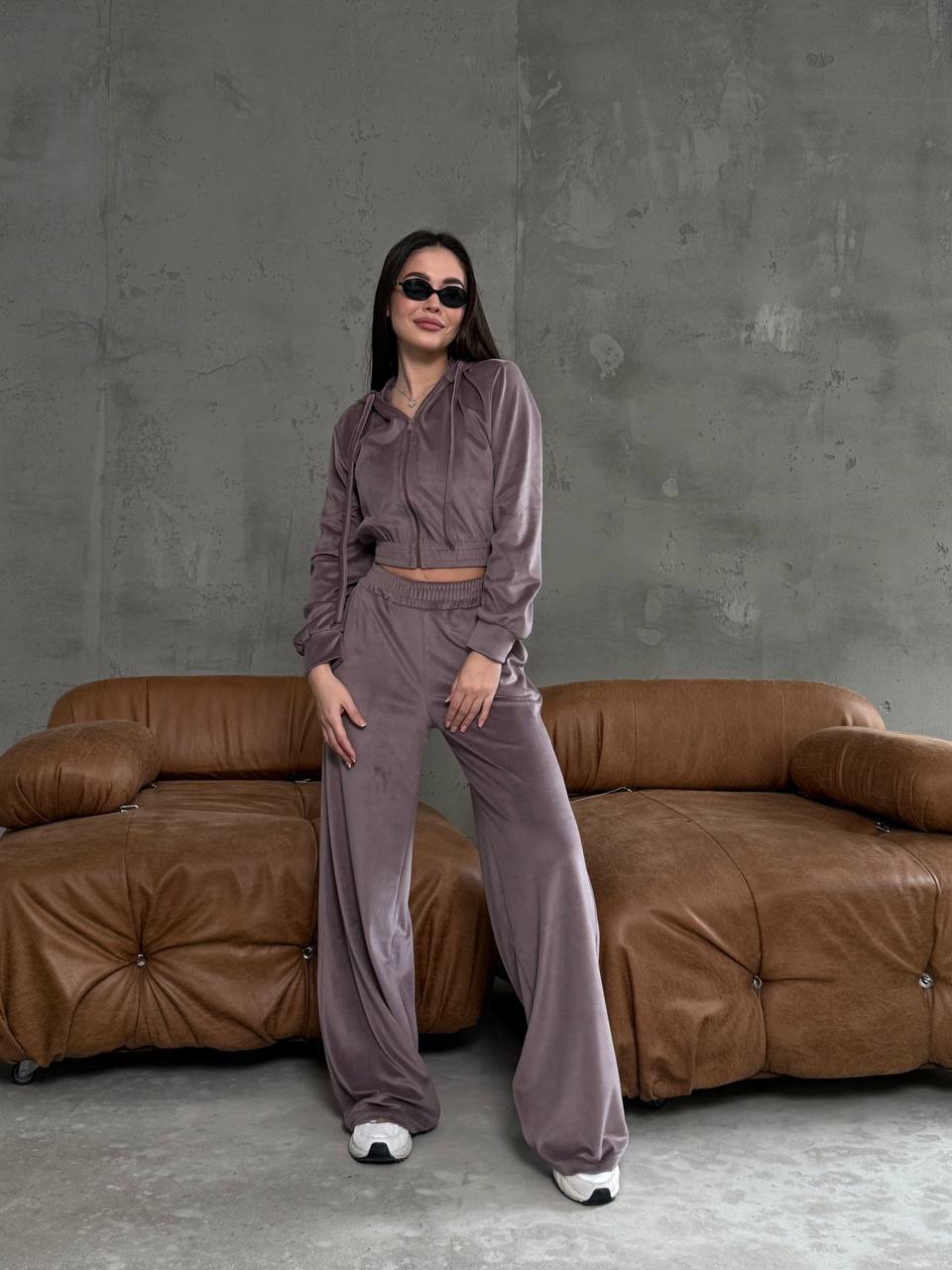 Жіночий велюровий костюм кавового кольору 34780
