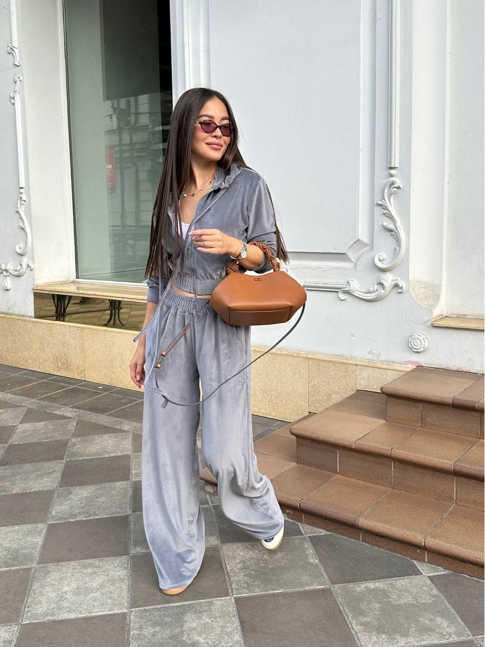 Жіночий велюровий костюм сiрого кольору 34775