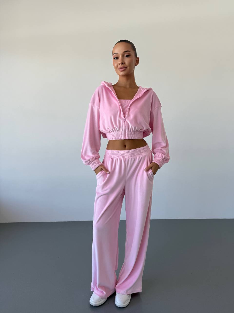 Жіночий велюровий костюм трійка рожевого кольору 34399