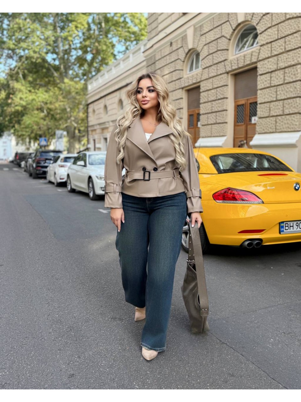 Жіноча куртка-косуха з еко-шкіри бежевого кольору 34640
