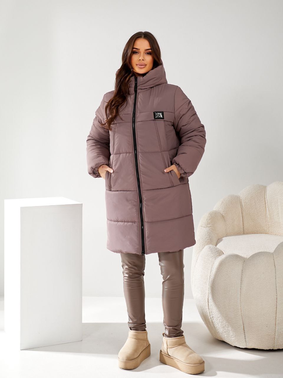Жіноча куртка стьобана з капюшоном пудрового кольору 34500