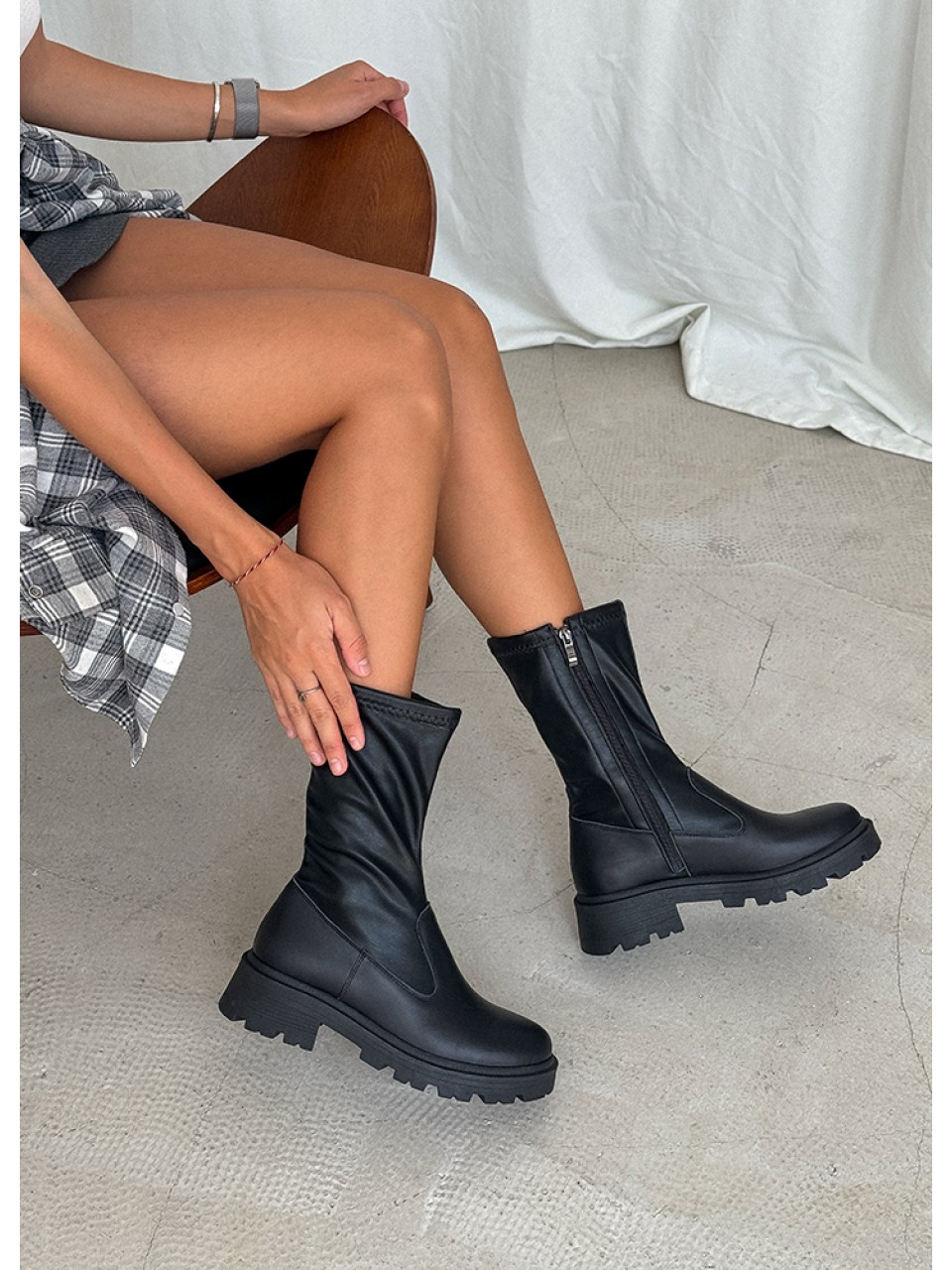Жіночі черевики з натуральної стрейч шкіри (хутро) чорного кольору 35336