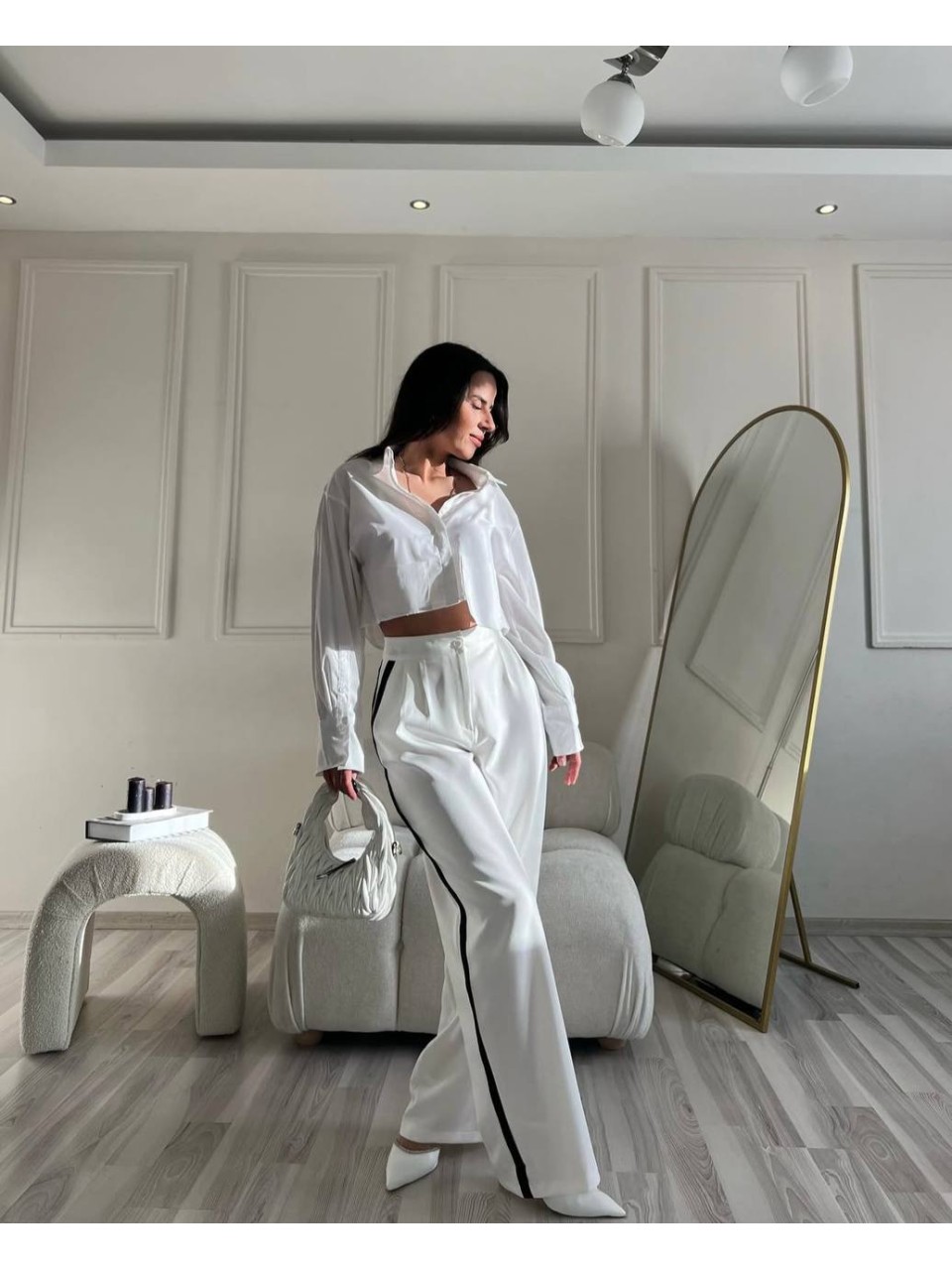 Жiночi штани палацо з лампасами молочного кольору 34523
