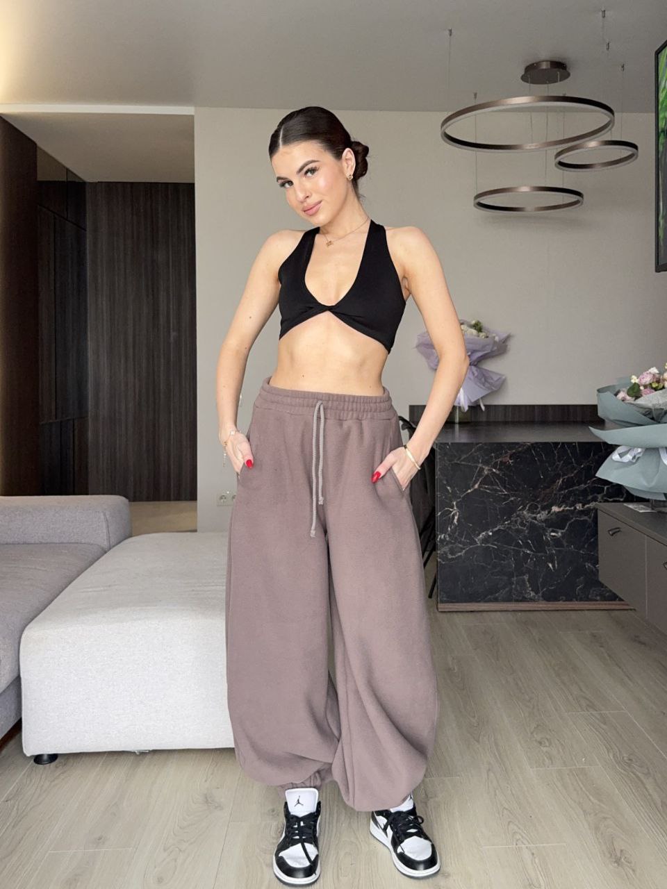 Посадка: Штани бувають із високою або низькою посадкою. Висока посадка підкреслює талію і створює стрункий силует, тоді як низька посадка забезпечує більш розслаблений та модний вигляд. Деталі: Штани можуть бути оснащені різними типами поясів (на гумці, із застібками або шнурками), а також кишенями та декоративними елементами. Вони легко поєднуються з різними верхніми частинами одягу, такими як блузи, светри або куртки, і підходять для різних заходів від роботи до відпочинку.