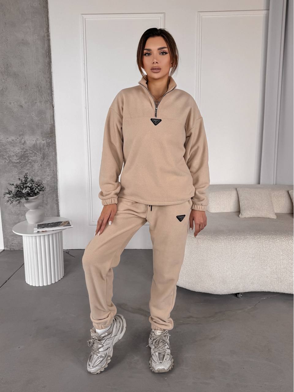 Жіночий костюм флісовий бежевого кольору 35619