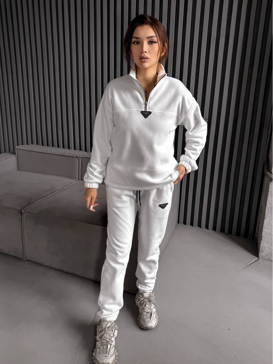 Жіночий костюм флісовий молочного кольору 35618