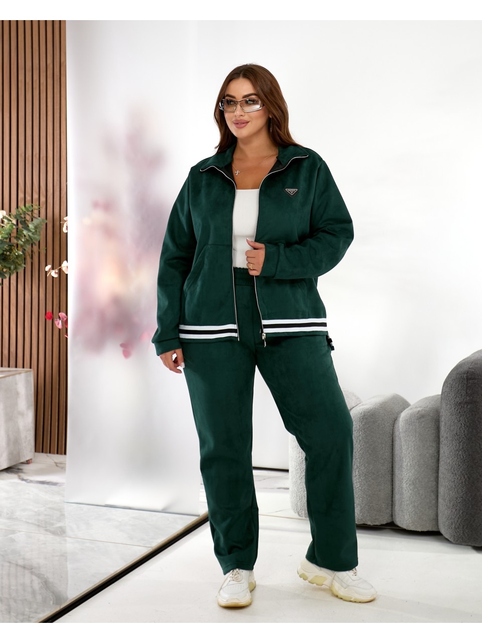 Жiночий прогулянковий костюм iз замшу смарагдового кольору 35381