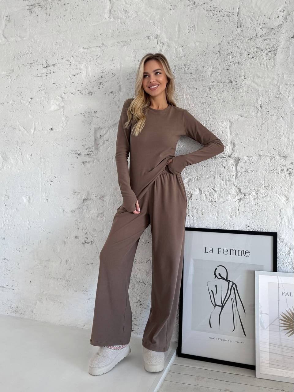 Жіночий прогулянковий термокостюм кавового кольору 35789