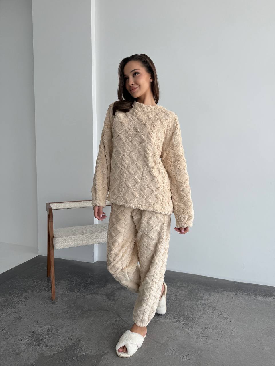 Жіночий теплий домашній костюм бежевого кольору 35726