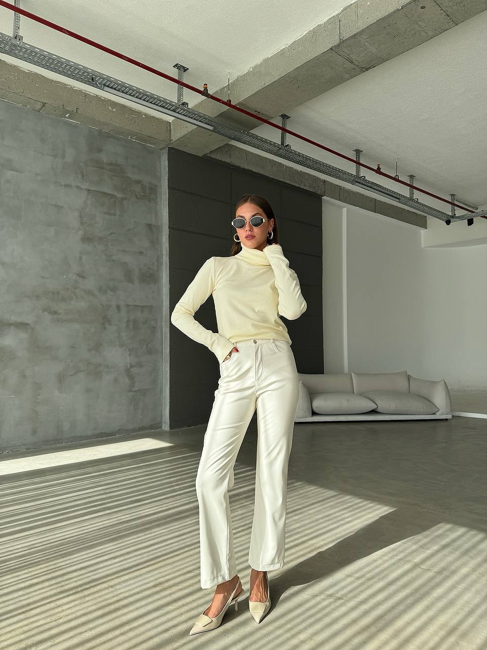 Жіночий теплий гольф молочного кольору 36041