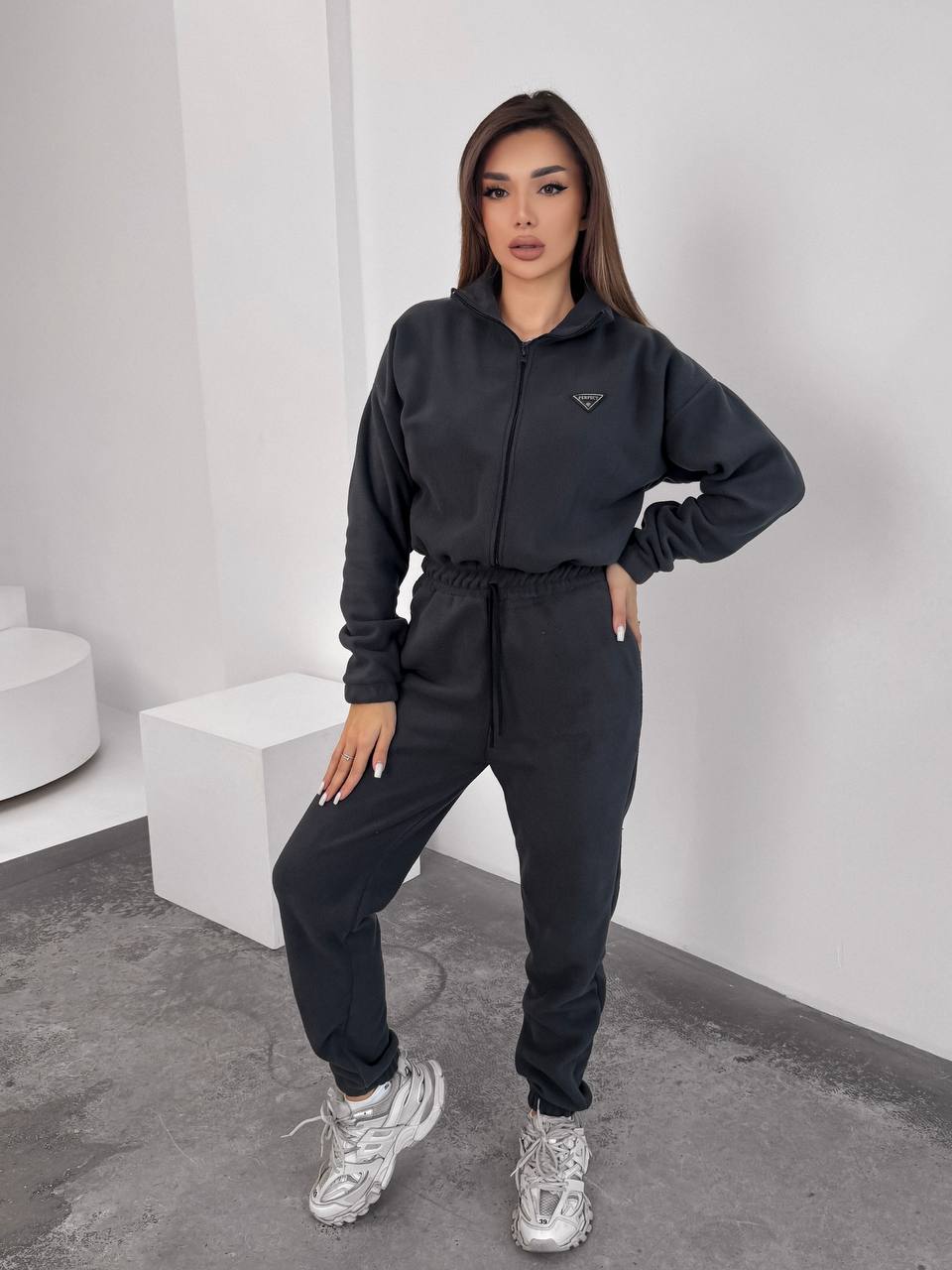 Жiночий теплий комбінезон iз флiса графiтового кольору 35887