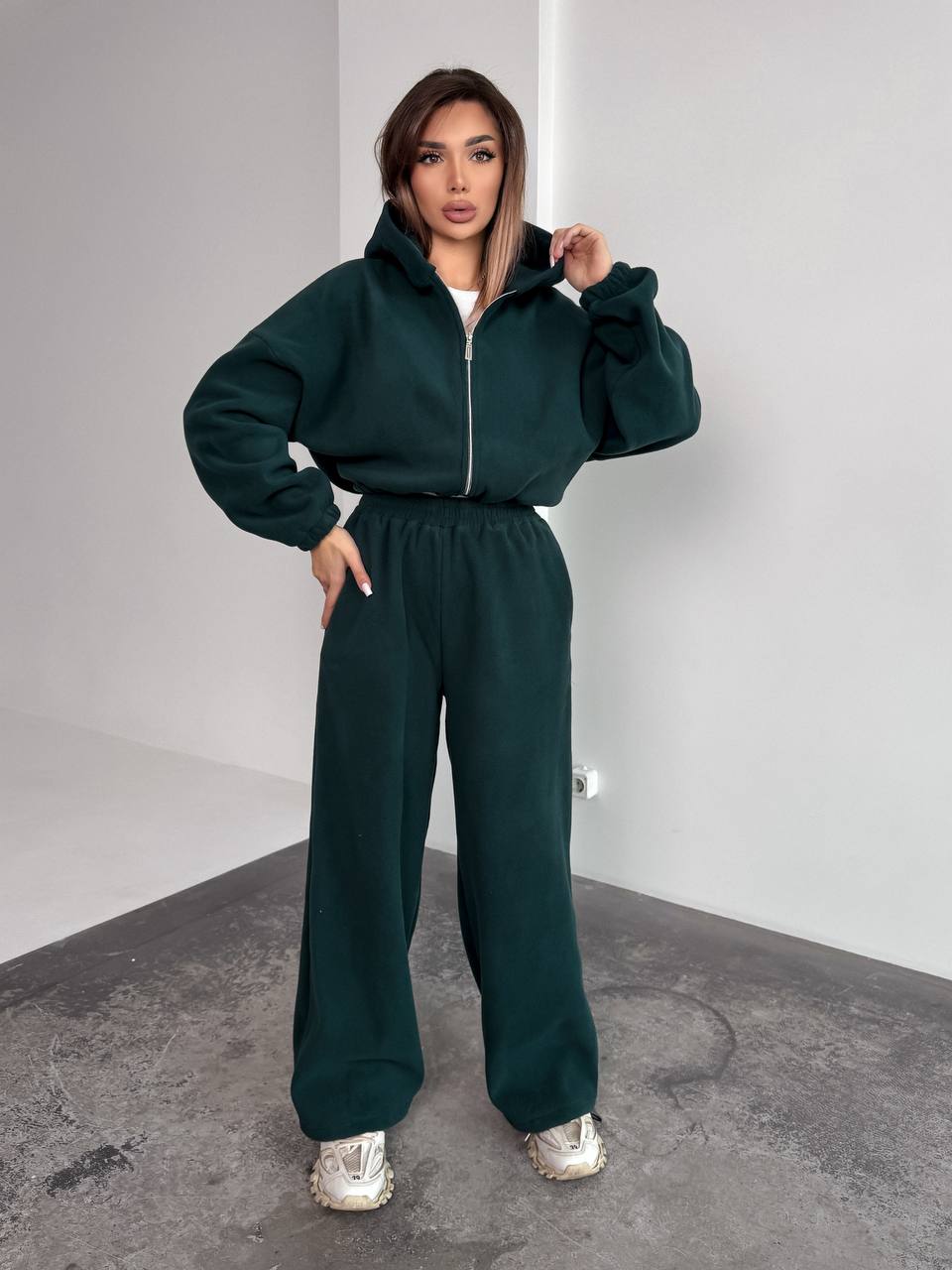 Жіночий теплий костюм iз фліса зеленого кольору 35985