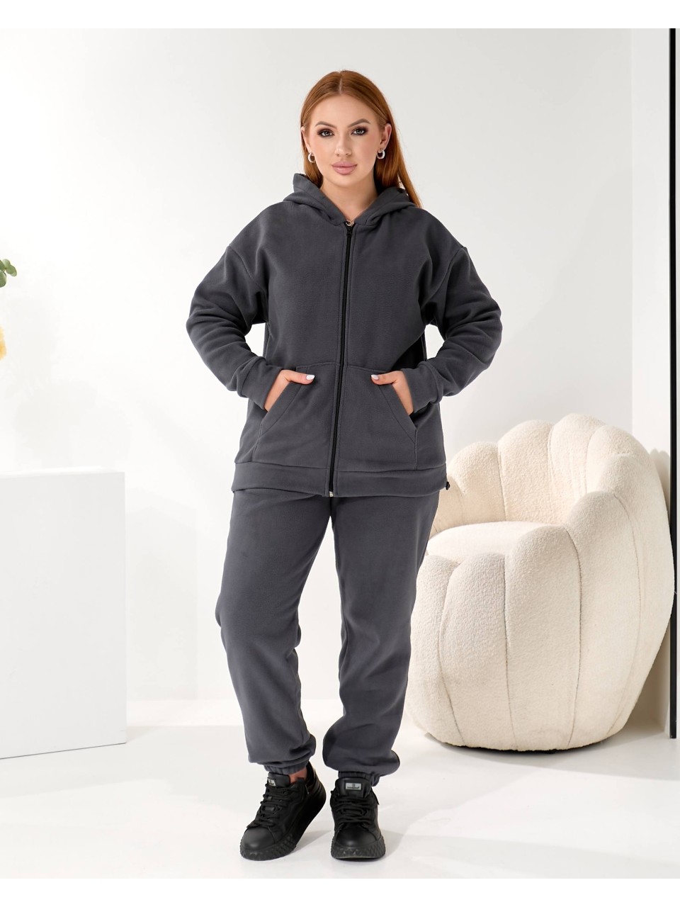 Жiночий теплий костюм на змiйцi графiтового кольору 35867
