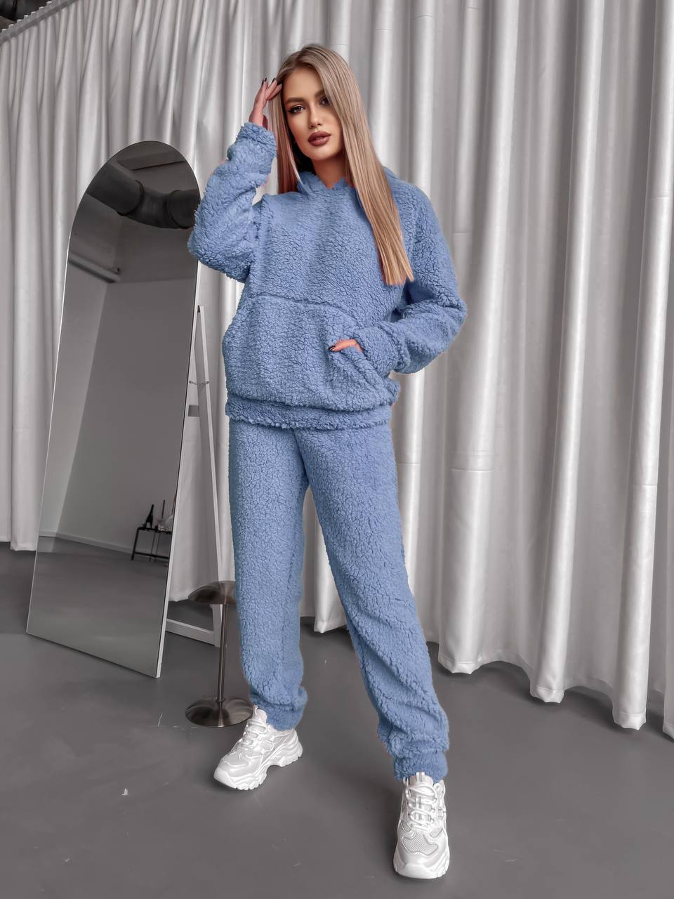 Жіночий теплий костюм з хутра Теддi блакитного кольору 35884