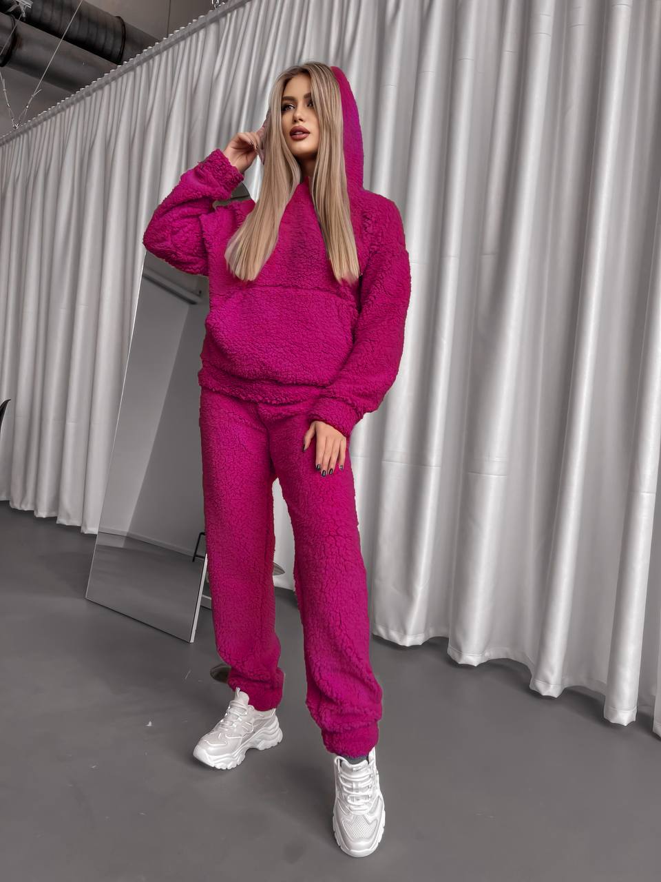 Жіночий теплий костюм з хутра Теддi малинового кольору 35885