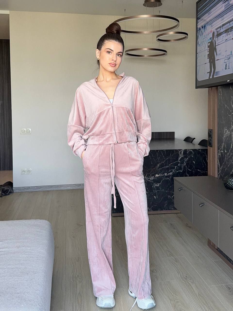 Жіночий велюровий костюм пудрового кольору 35640
